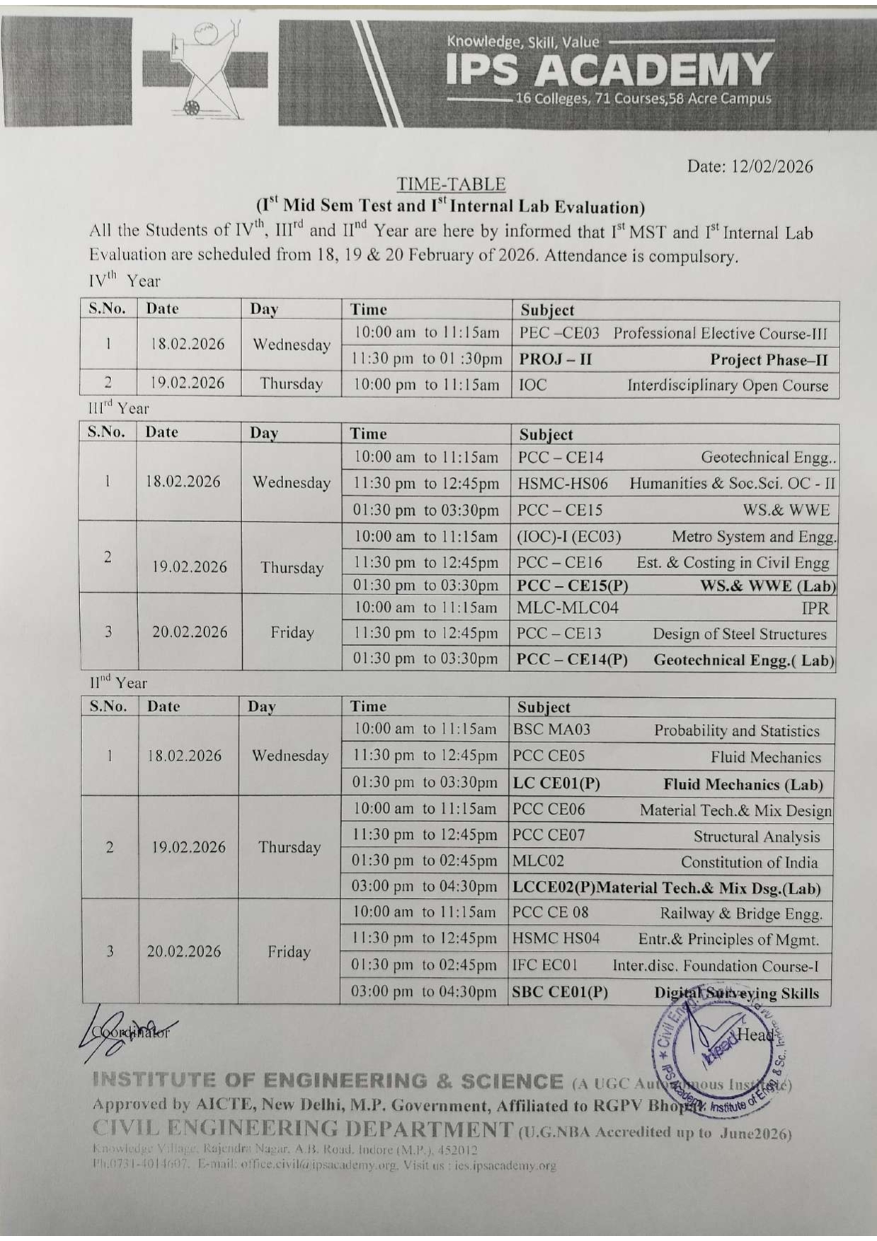1st Mid Sem Test and 1st Internal Lab Evaluation Time Table Feb 2026[CE+AG] Posted on February 13, 2026 by Admin