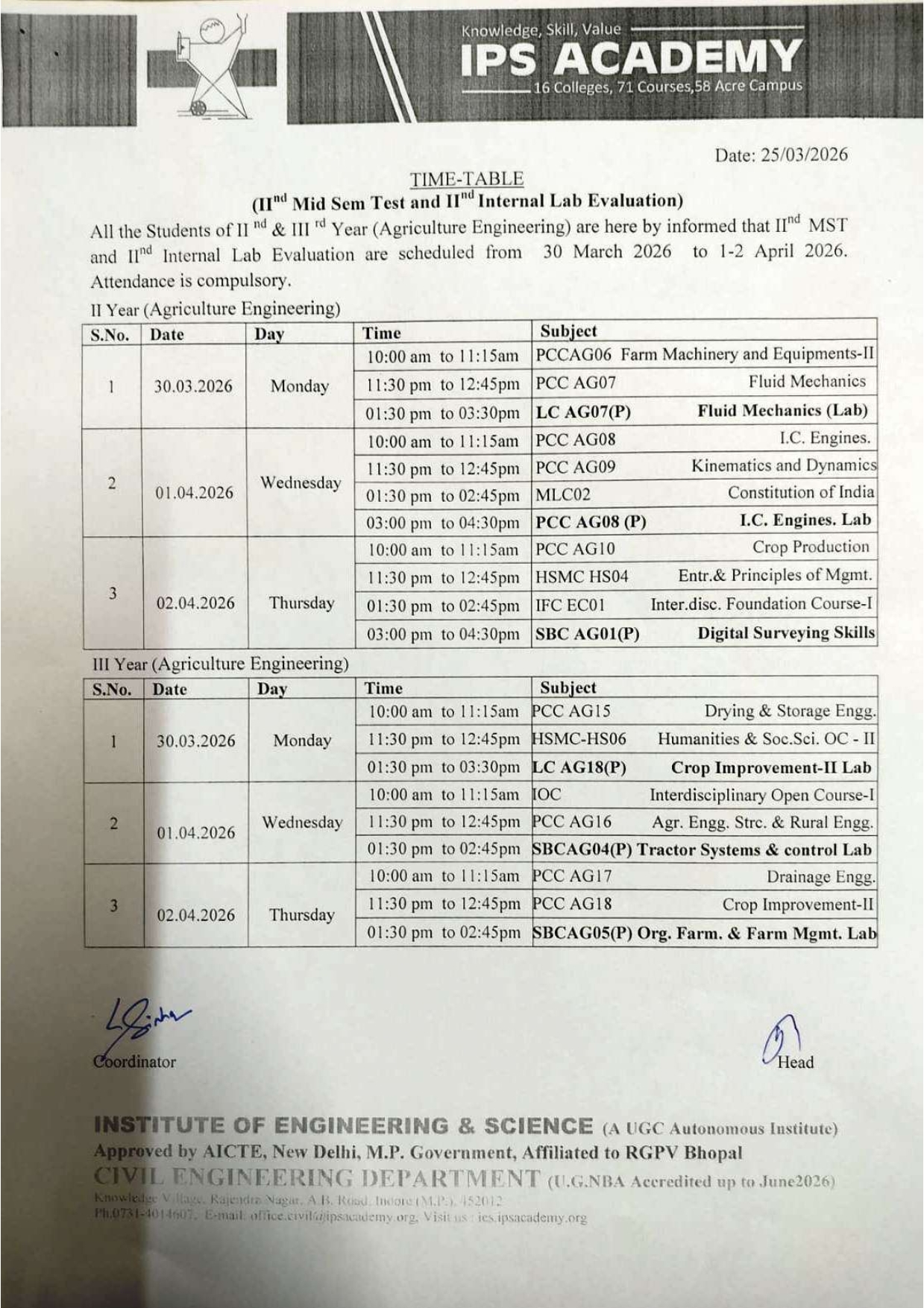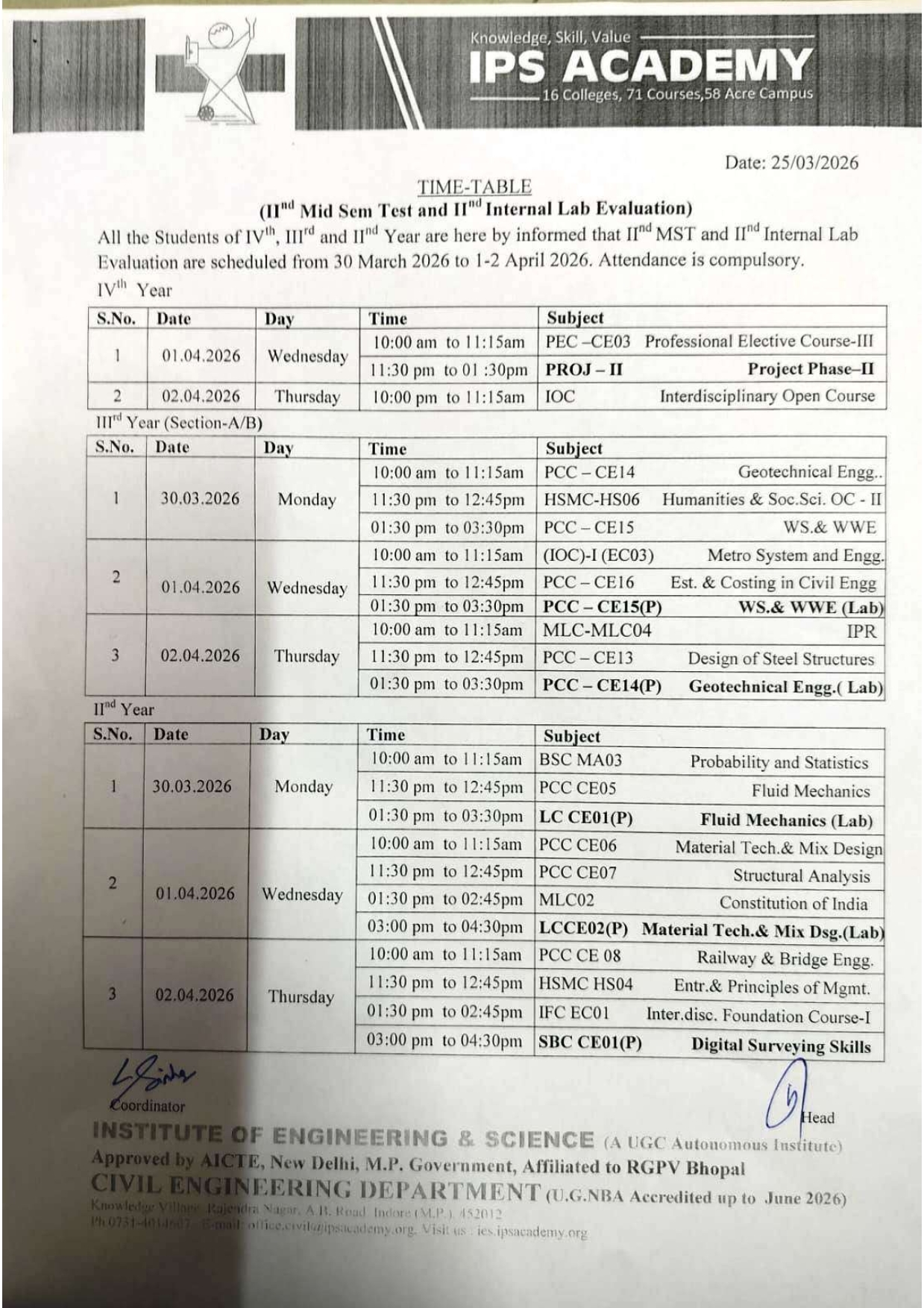 2nd Mid Sem Test and 2nd Internal Lab Evaluation Time Table Feb 2026[CE+AG] Posted on March 25, 2026 by Admin